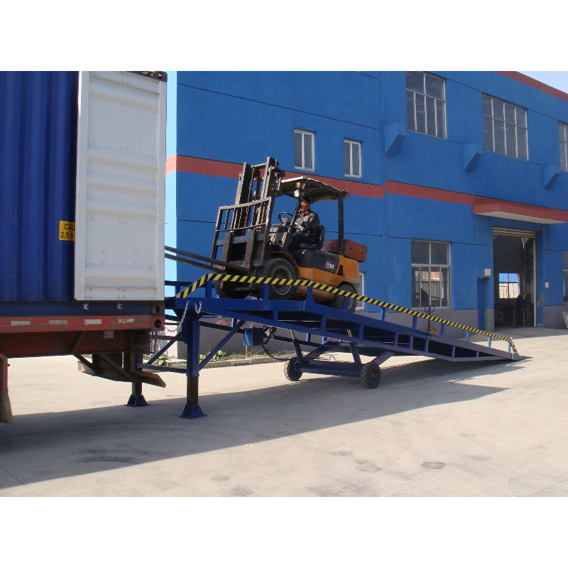 移動(dòng)式登車橋廣泛用于無(wú)裝卸設(shè)備的貨臺(tái)及流動(dòng)裝卸場(chǎng)所,是與叉車配合使用的貨物裝卸輔助設(shè)備。借助移動(dòng)式登車橋,叉車能直接駛?cè)肫嚰b箱內(nèi)部進(jìn)行批量裝卸作業(yè)。只需單人操作,不需動(dòng)力電源,即可實(shí)現(xiàn)貨物的安全快速裝卸